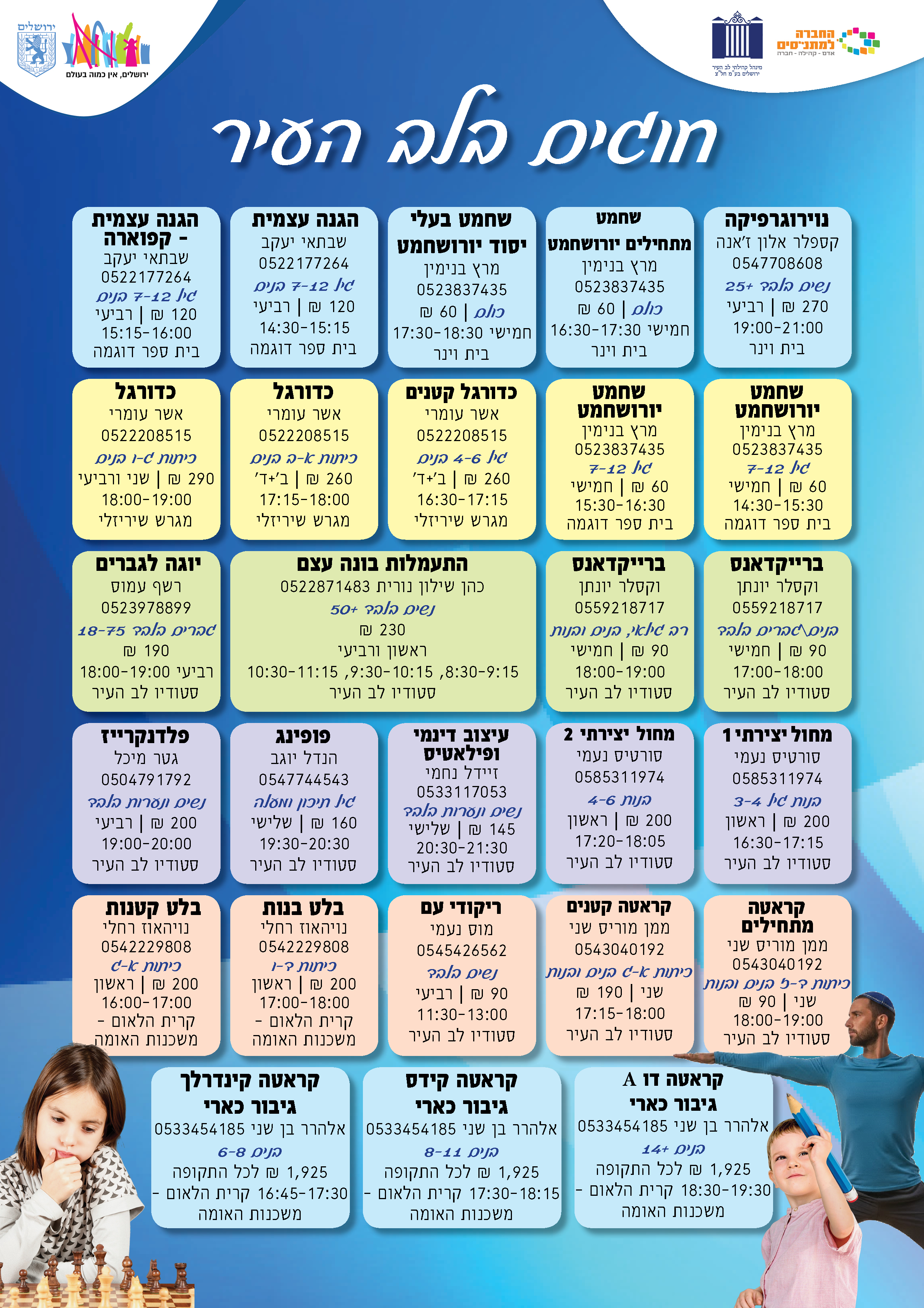 שאלות, בירורים או אם רוצים ללמד חוגים נא שלחו מייל אל [email protected]